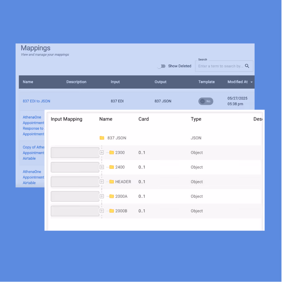 Intely natively works with JSON and supports automation of JSON and FHIR API payloads, HL7 v2 messages, and flat files such as CSV and TXT. We also support PDF and other image-based documents. Prebuilt schemas are available for FHIR R4B and HL7 v2 to accelerate development.