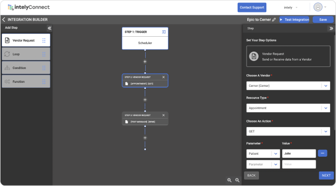 Reduce or remove the need to leverage development resources to create custom integrations. Intely has simplified the integration process to where you can create your interoperability workflows for healthcare as easily as making a flow chart.