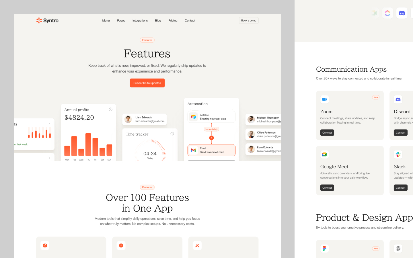 Thanks to its flexible structure, Syntro is also suitable for a wide range of other business types, making it a solid choice for creatives and founders alike.
